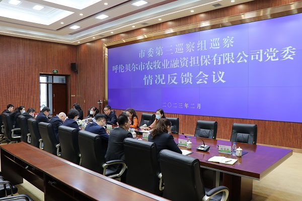 根據(jù)呼倫貝爾市委統(tǒng)一部署,2023年2月28日,市委第三巡察組向呼倫貝爾市農(nóng)牧業(yè)融資擔保有限公司黨委反饋巡察情況。會上,市委第三巡察組副組長閆焱代表市委第三巡察組向市農(nóng)擔公司黨委領導班子進行反饋,組長李崗進行講話,并提出了要求,市農(nóng)擔公司黨委書記王增志主持會議并作表態(tài)發(fā)言。